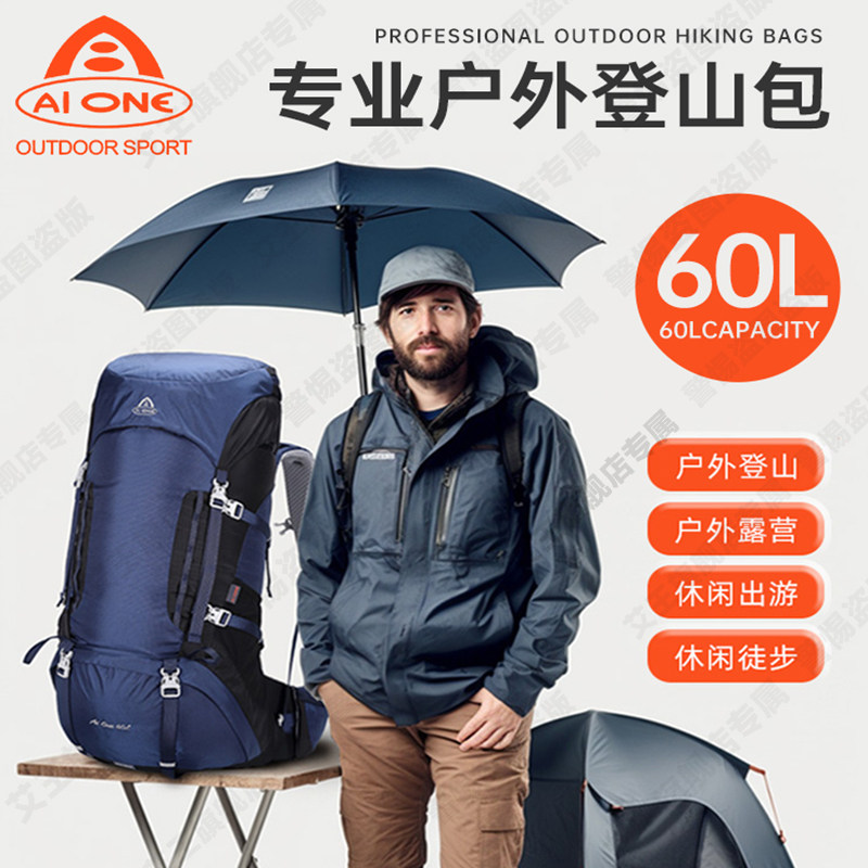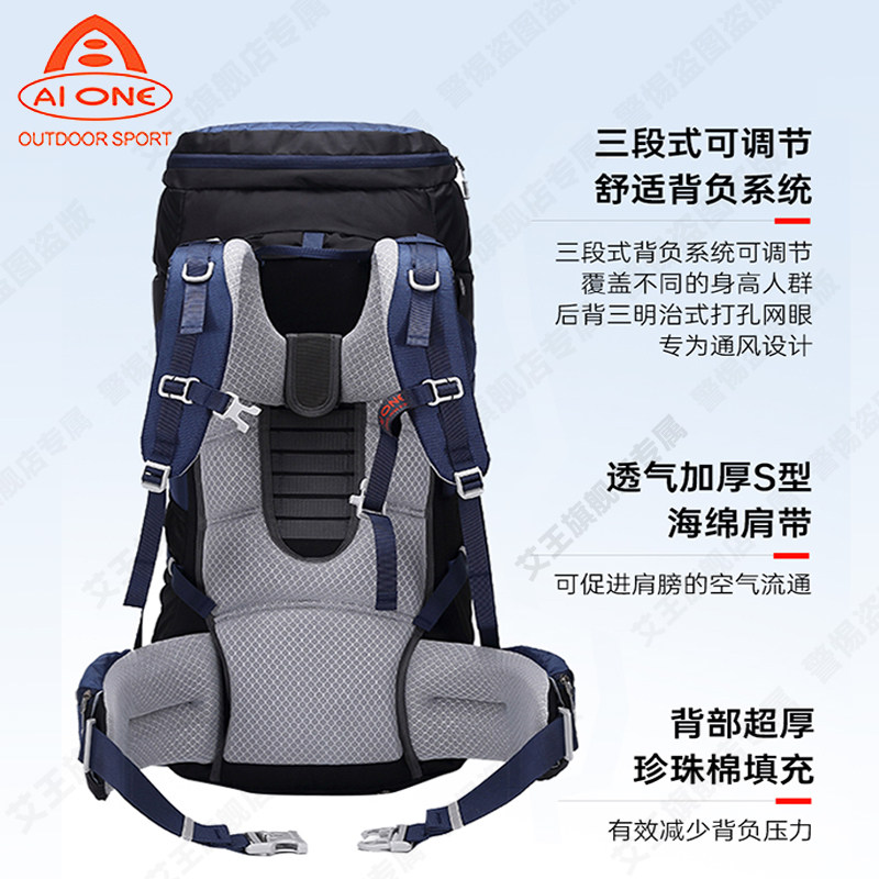 艾王登山包背负系统60升双肩背包多功能专业户外旅行包重装 包新款