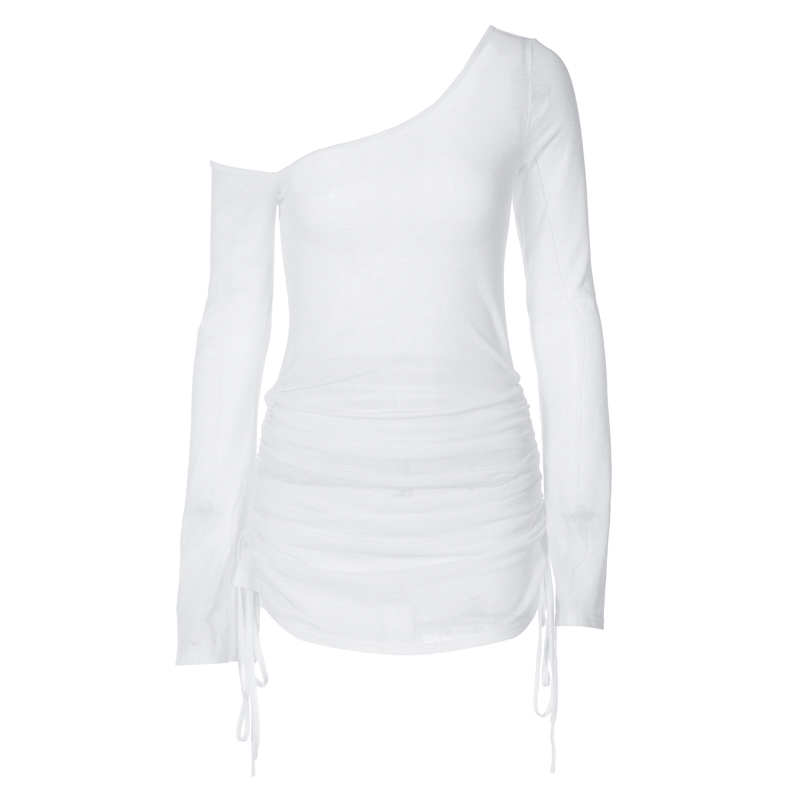 gusty韩系纯欲温柔风斜肩针织连衣裙性感辣妹长袖 透视绑带包臀裙