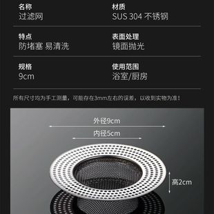 卫生间地漏毛发过滤网通用厨房卫生间洗衣机下水管道地漏不锈钢