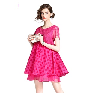 短款 奈昕个性 同色波点甜美夏大码 33150 A字裙纯色连衣 化私人订制