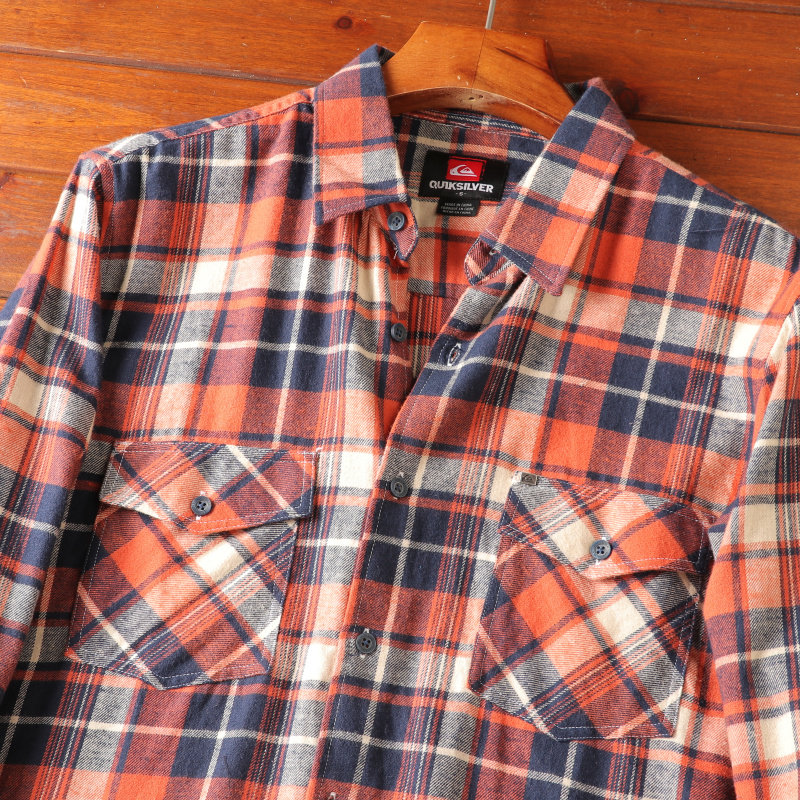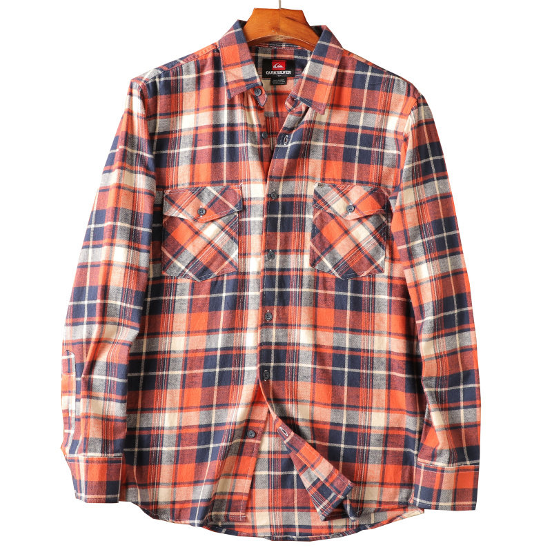 格子长袖 磨毛复古时尚 衬衫 秋季 全棉磨毛绒质地 新品 老美订单男士