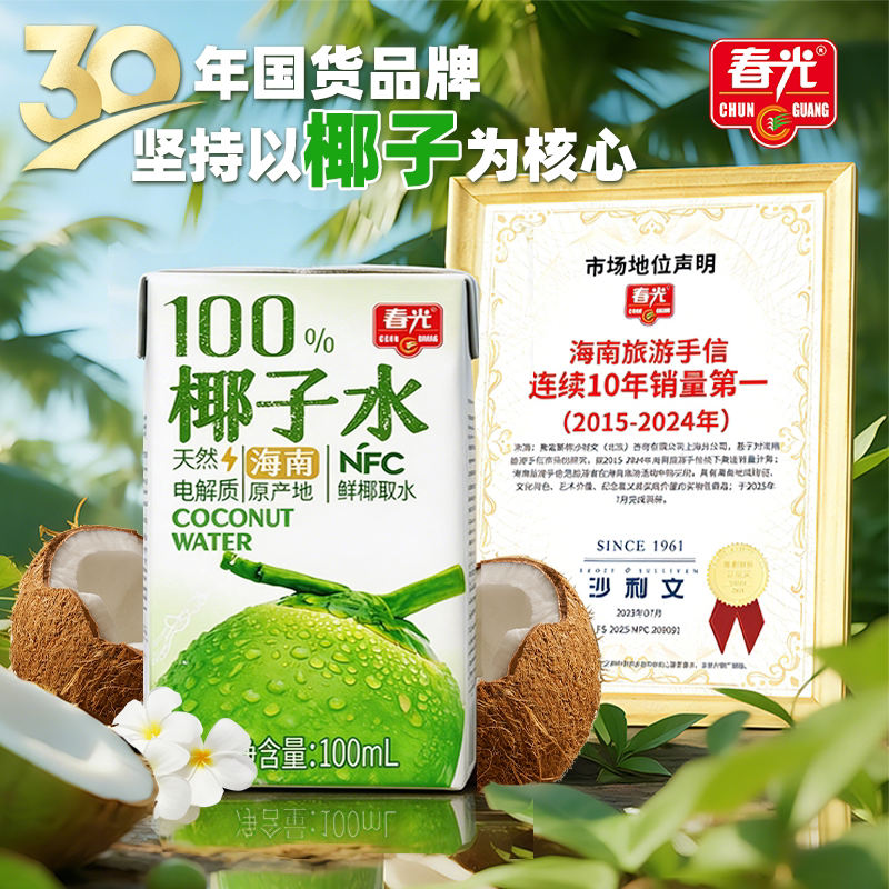 春光海南特产100%椰子水便携式 NFC椰青椰子汁饮料不添加白砂糖