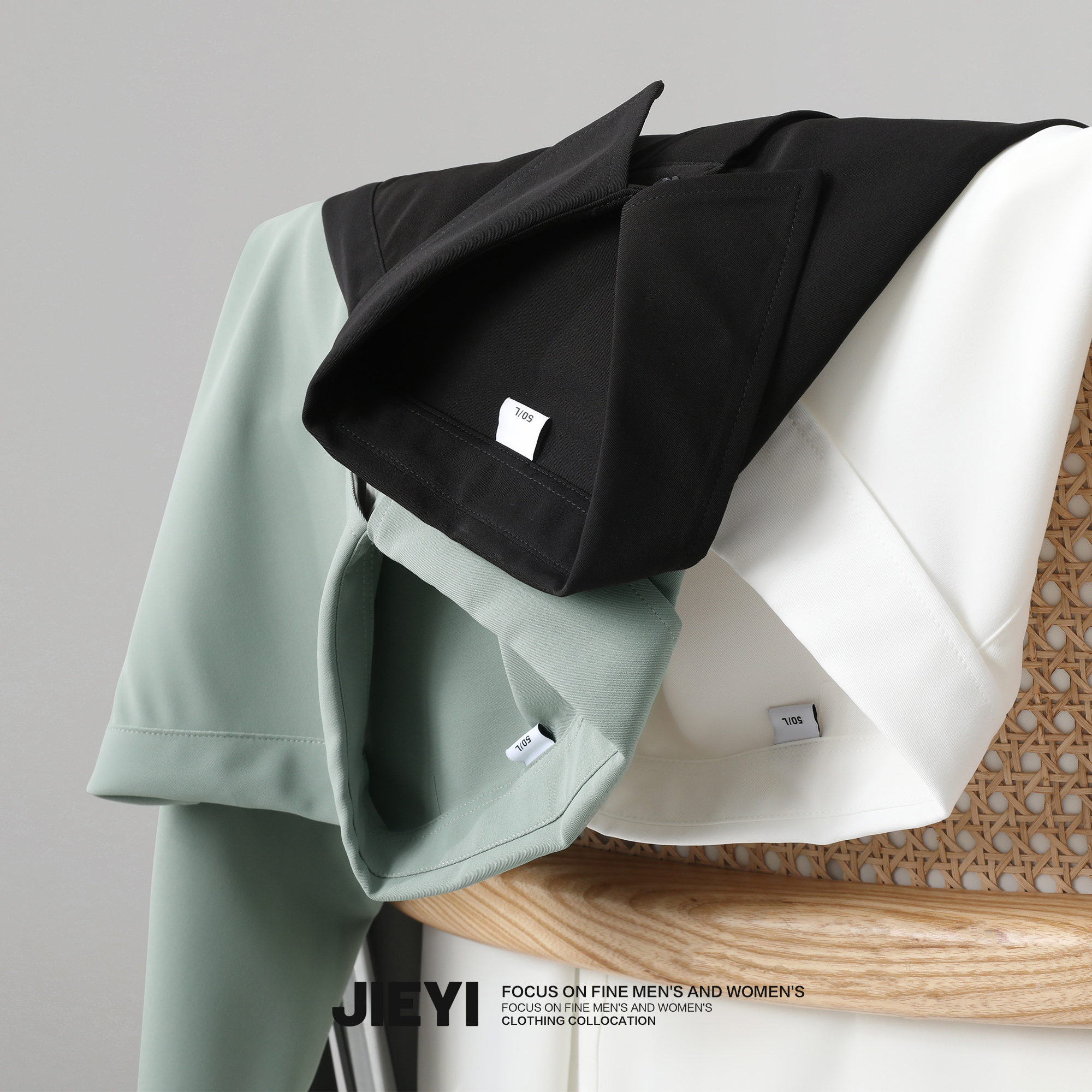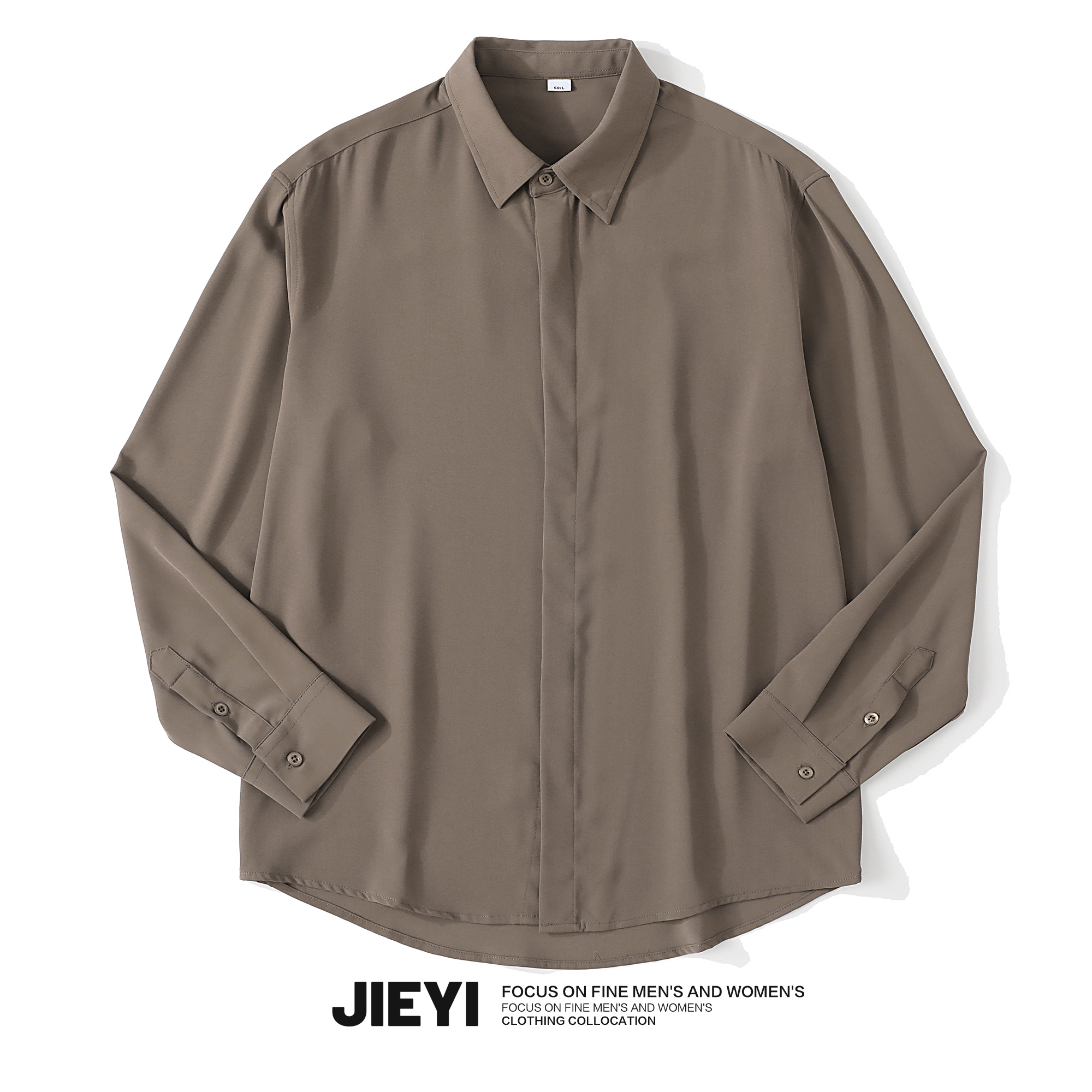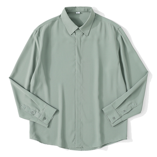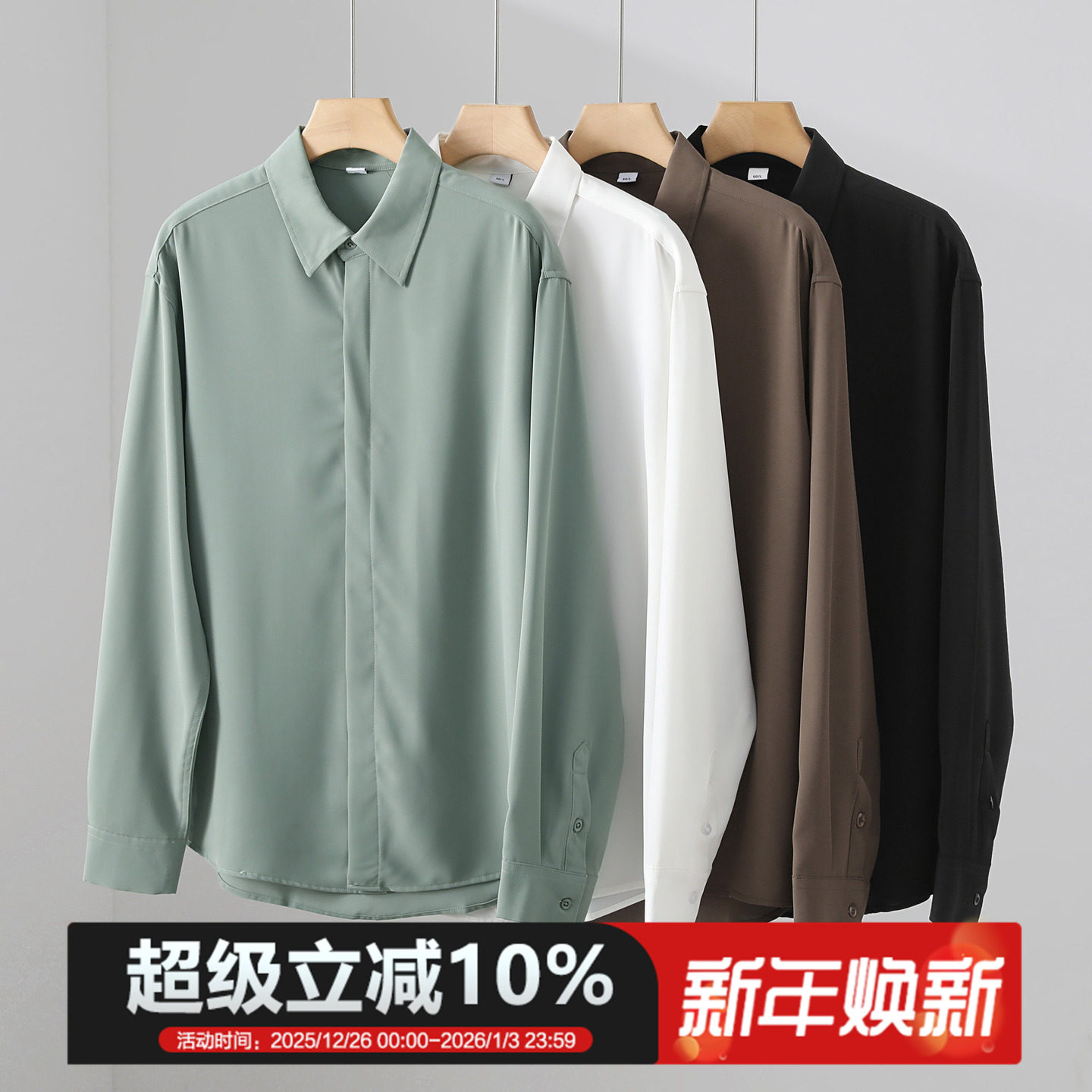 气质慵懒韩风翻领黑白纯色衬衣 男士 JIEYI 垂感丝滑高级感免烫衬衫