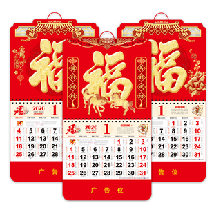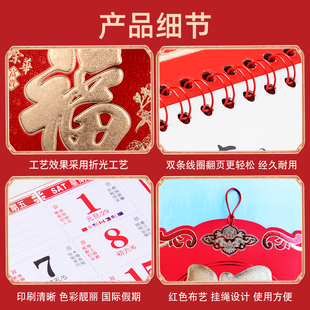 2026年挂历定制马年新款 福字日历高档家用挂墙年历大号手撕老黄历