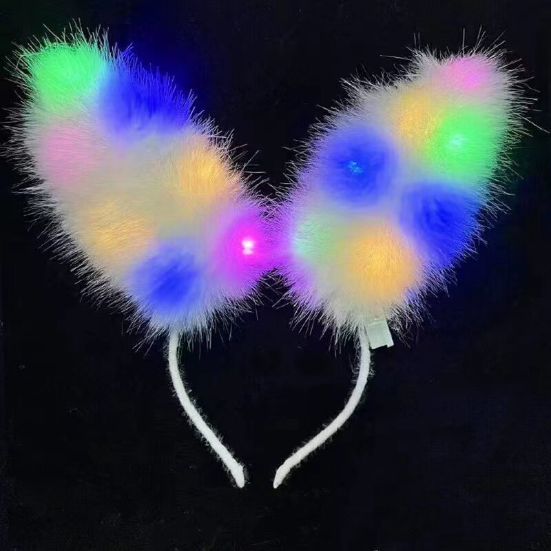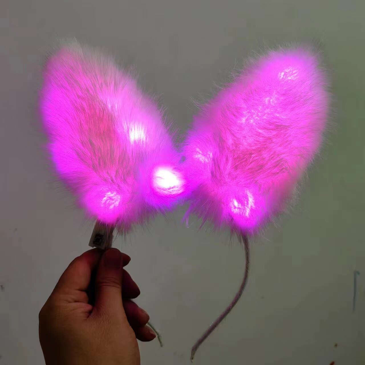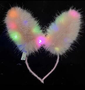 网红发光发箍超仙狐狸毛兔耳朵羽毛发箍儿童甜美头箍摆地摊小商品