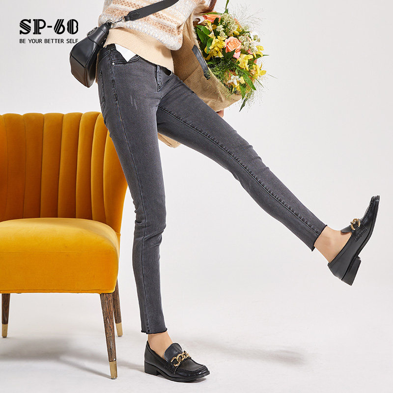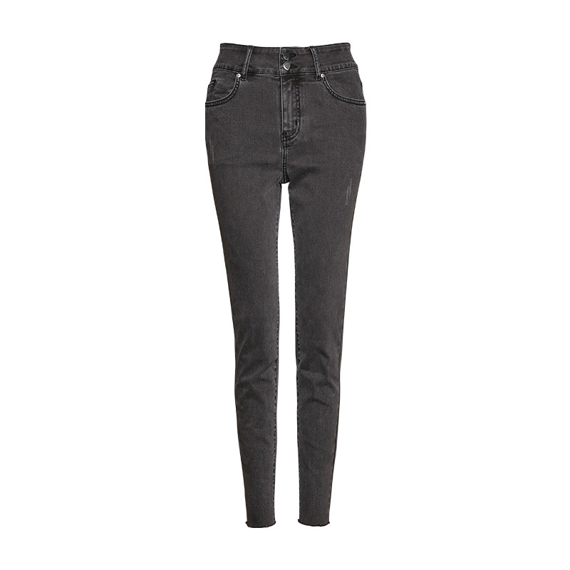 裤 sp68两粒扣中高腰小脚脚口剪牛仔裤 显瘦修身 新款 子 女2024秋冬季