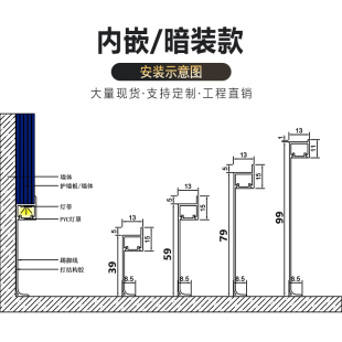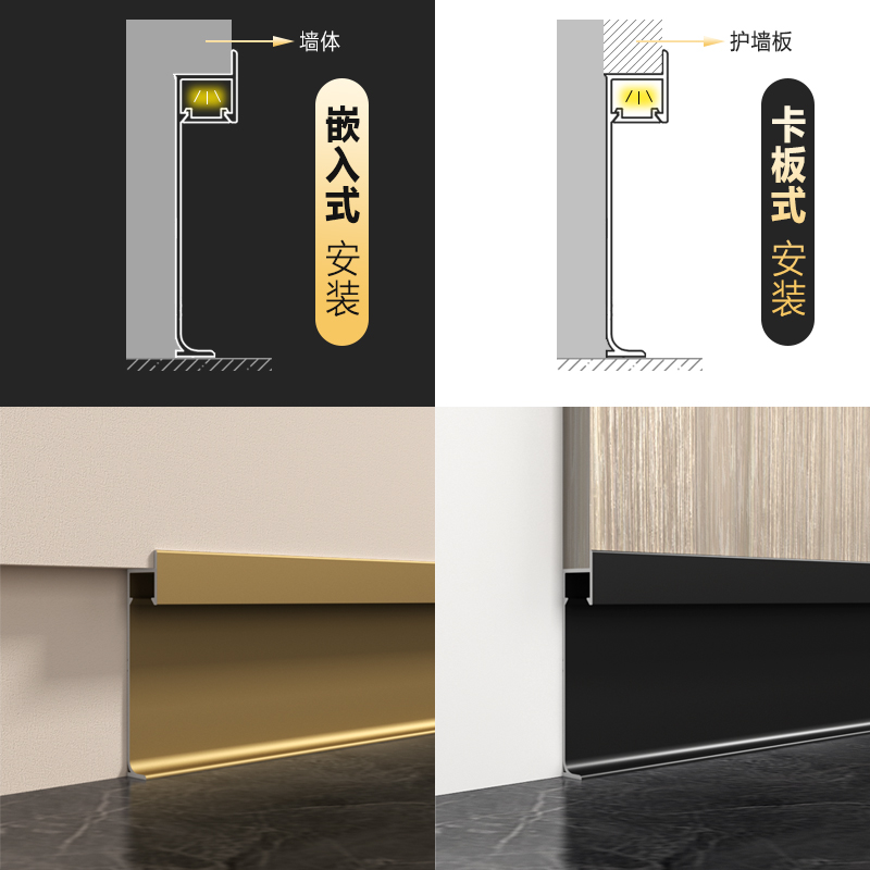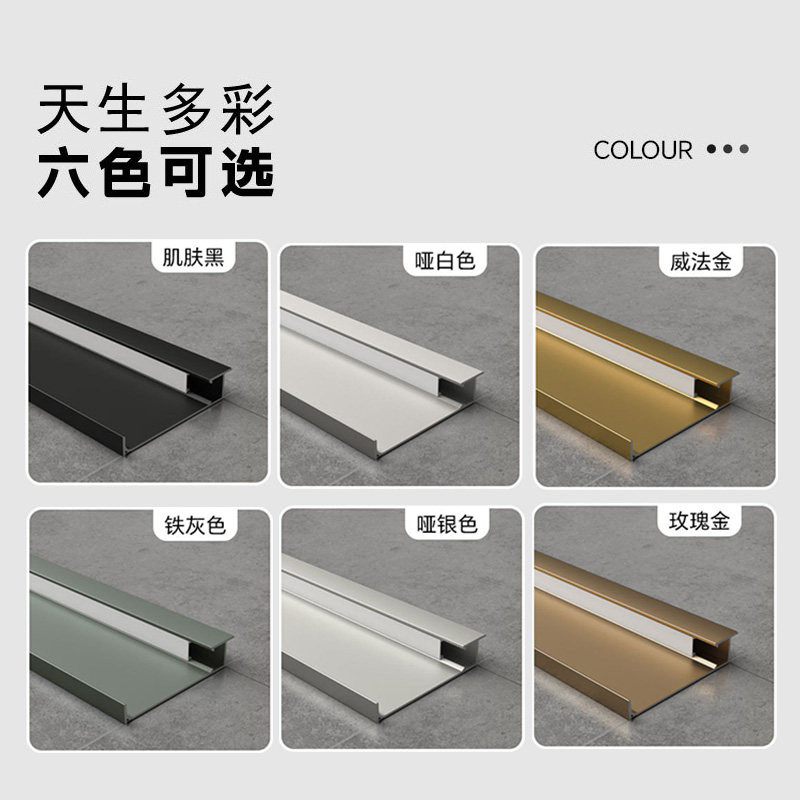 led铝合金灯带踢脚线带槽暗装 不锈钢内嵌发光金属黑色墙角地脚线