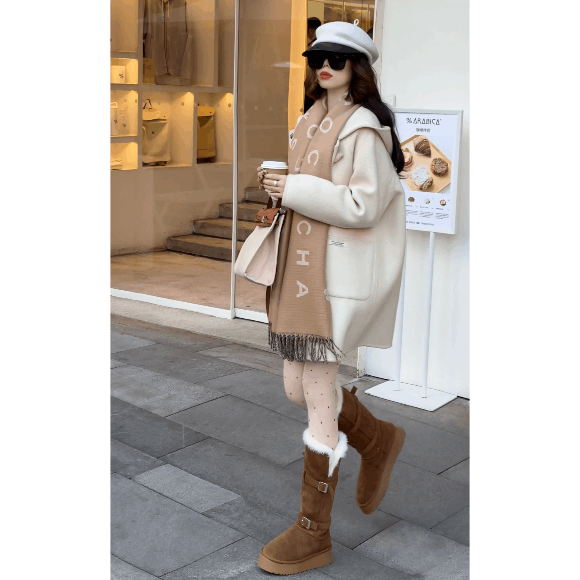 气质显瘦百搭毛呢外套 可拆卸羽绒服内胆羊毛大衣2024新款 繁花