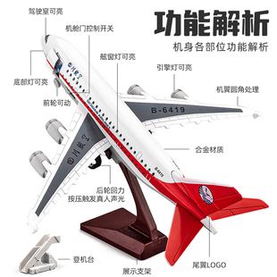 飞机玩具儿童A380合金仿真中国航空C919飞机模型民航客机航模摆件