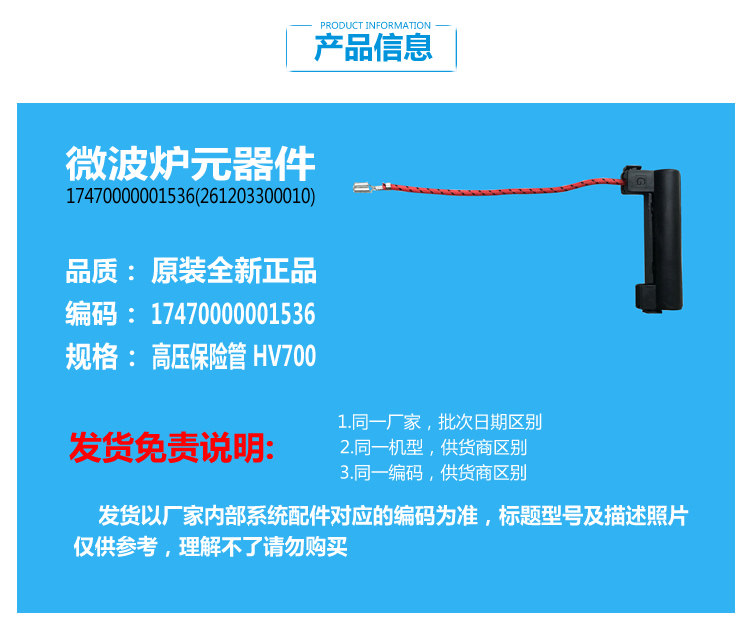 美 EG823LC2 微波炉配件高压保险管MM720FE1 MM721AAU 原装
