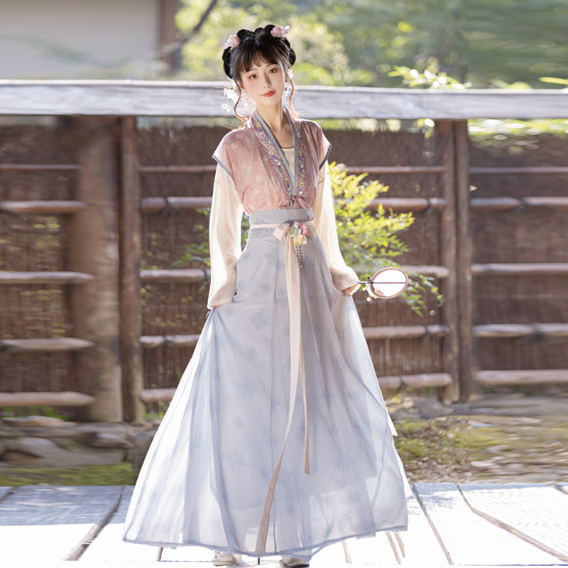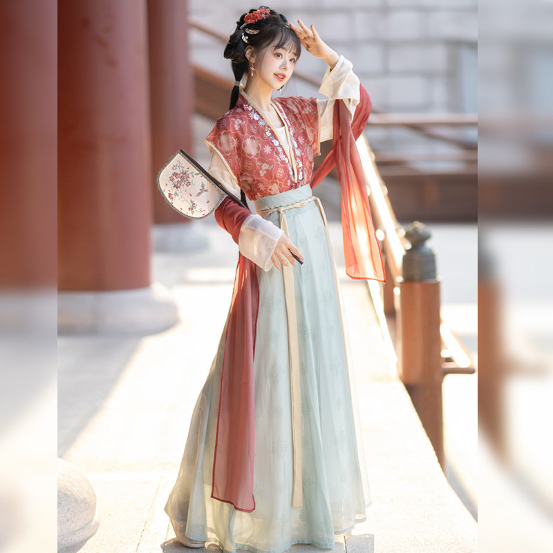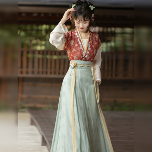 齐腰八破裙日常春夏款 汉服女唐制褙子圆领开衫 花瑶 古月坊原创