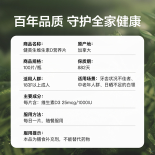 Jamieson健美生维生素D3营养片补钙维生素d助钙吸收片剂 自营