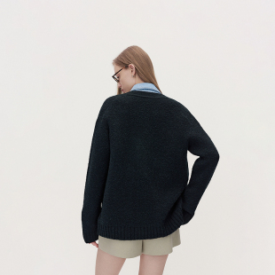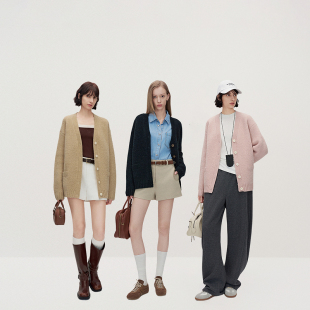 OCHIRLY欧时力V领宽松针织外套女毛衣复古高级感2025春新款