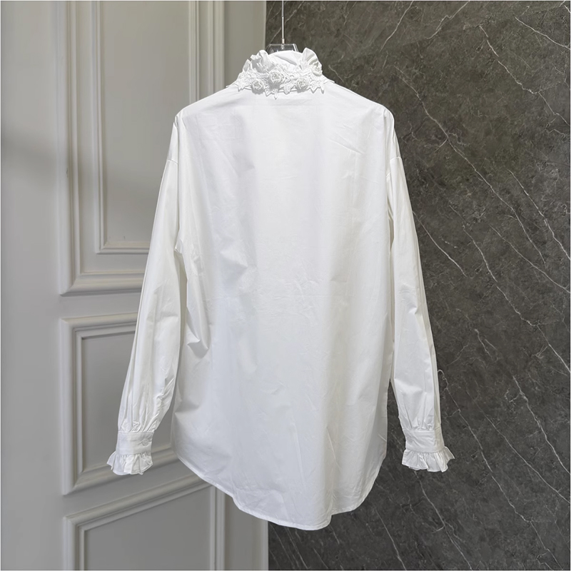 高级感钉珠花朵长袖 法式 新款 女荷叶边2025春季 上衣 宫廷风立领衬衫