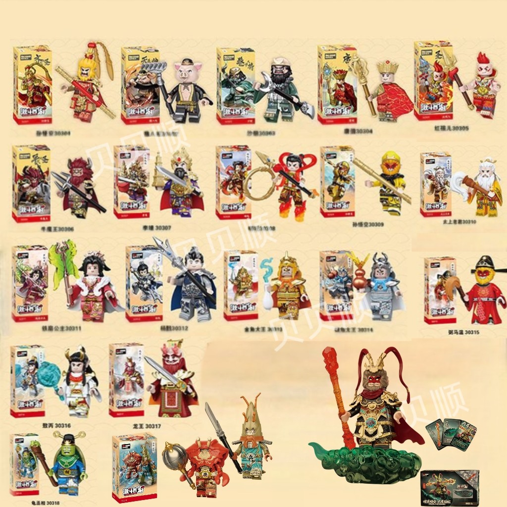 孙悟空积木人仔西游记齐天大圣猪八戒牛魔王拼装 迪库激斗男孩玩具