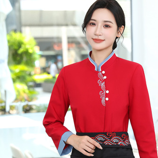 酒店服务员工作服中式 宴会厅茶楼前厅秋冬女 餐厅火锅饭店餐饮服装