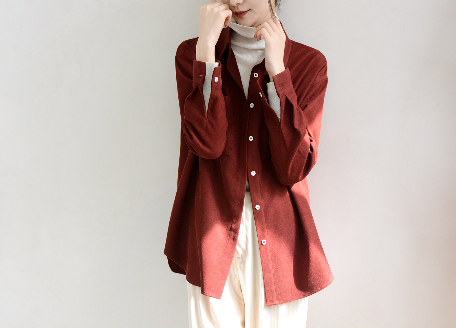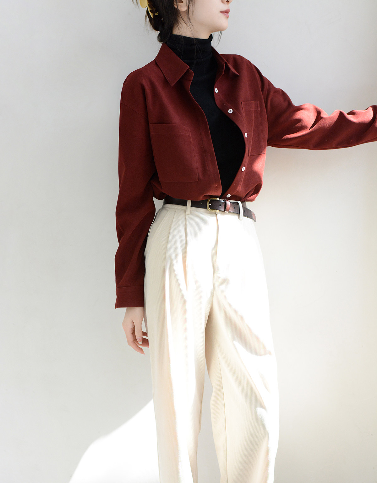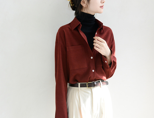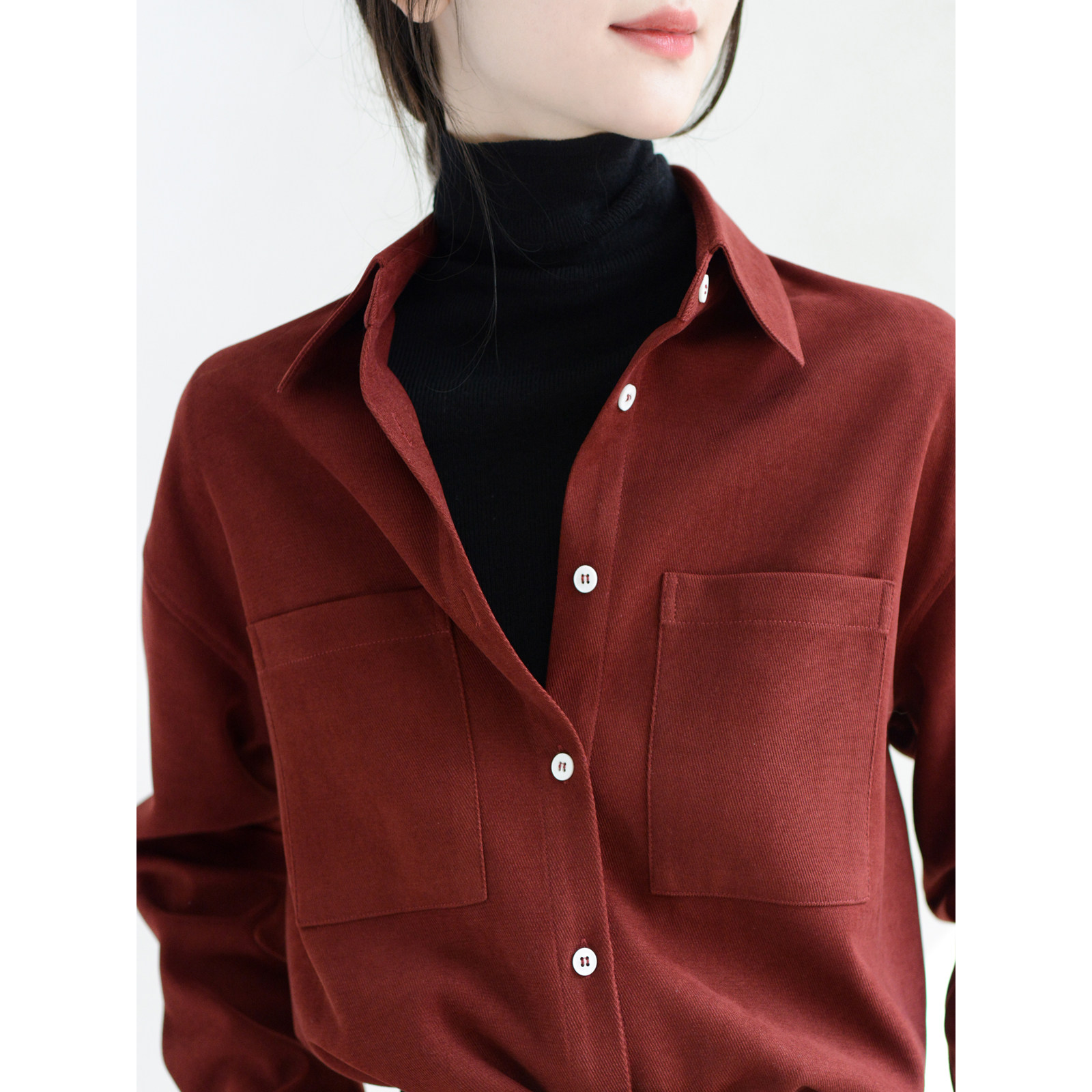 衬肤磨毛衬衫 TRR 衬衣男朋友 宽松慵懒风长袖 女 style深红洋气时尚