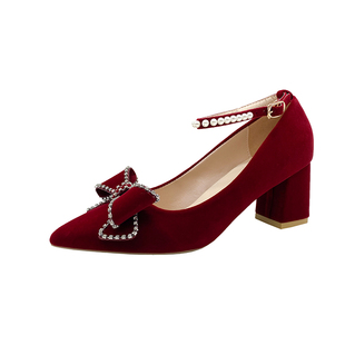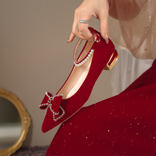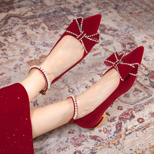 女细跟2025新款 单鞋 秋新娘鞋 秀禾婚鞋 浅口敬酒鞋 达芙妮红色高跟鞋