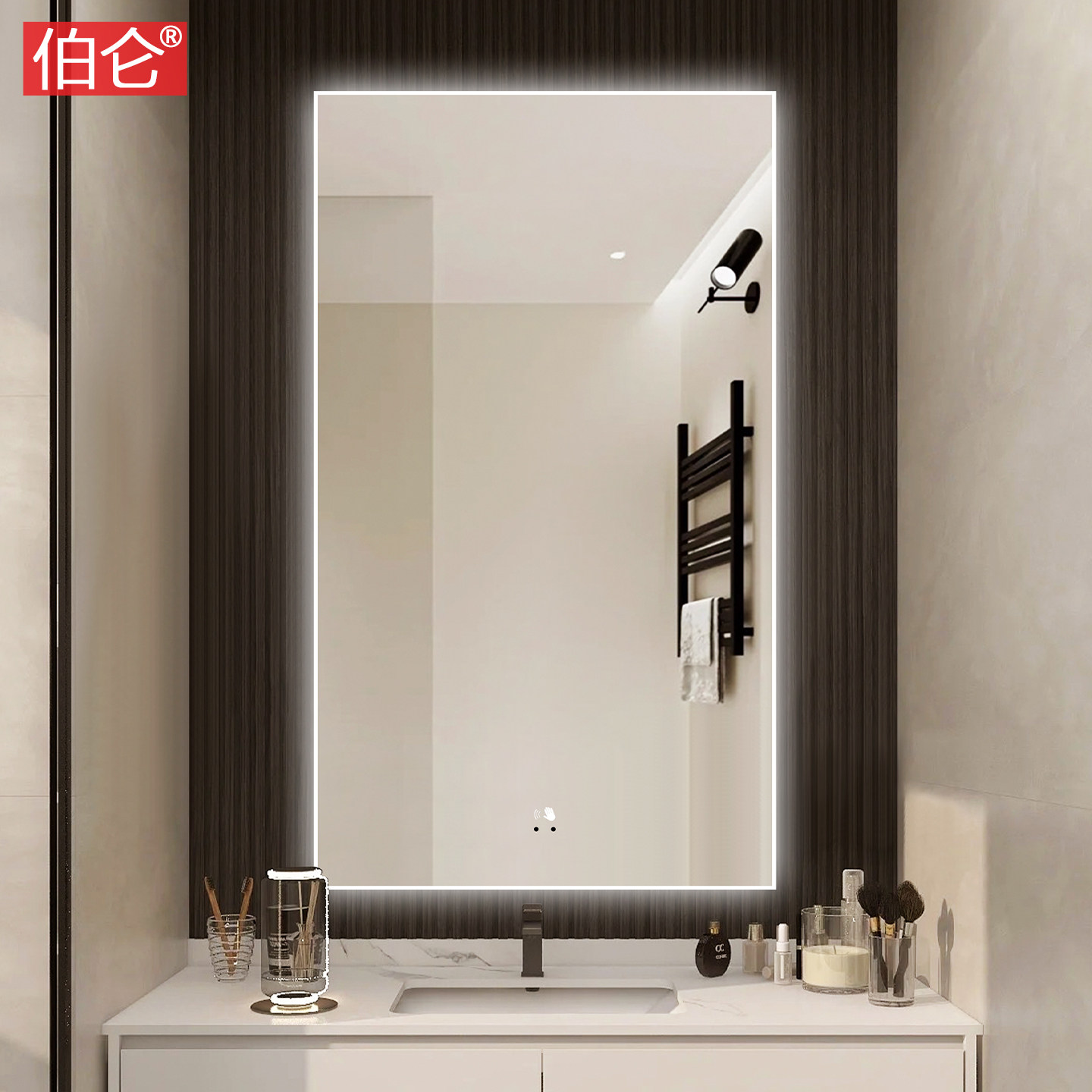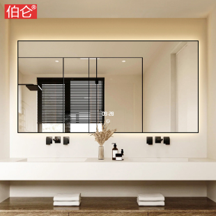 伯仑简约铝合金带框智能卫生间镜子壁挂带灯发光浴室镜洗手间防雾