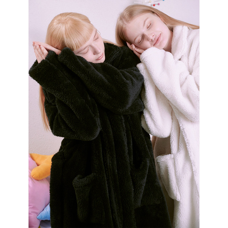 可外穿睡袍 长款 RooMance汝曼司极简特厚珊瑚绒睡衣男女冬季 情侣款