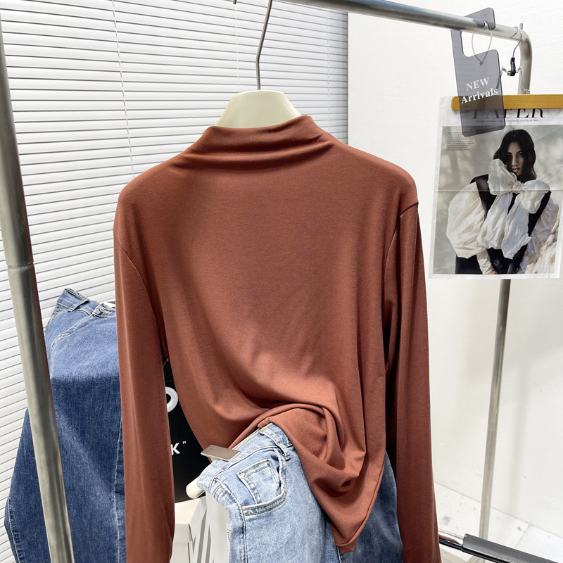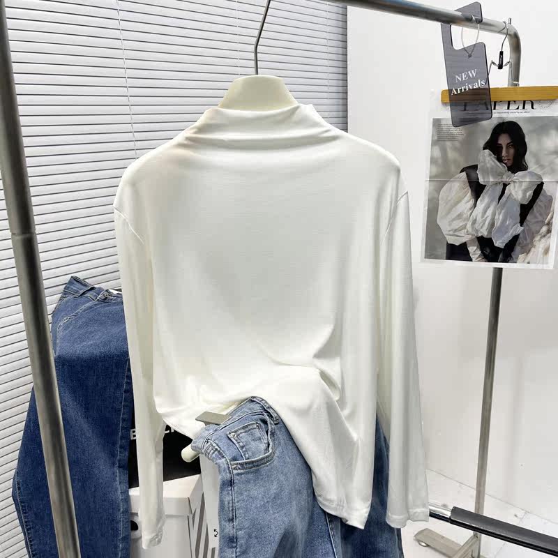 面膜T莫代尔打底衫 气质百搭长袖 女 胖mm半高领T恤韩版 2025初春新品