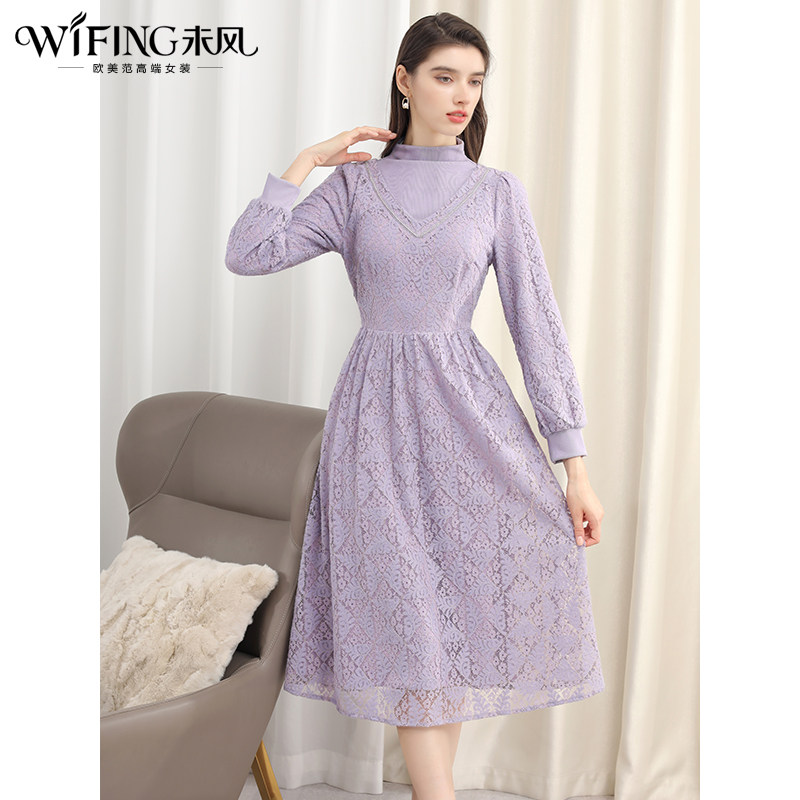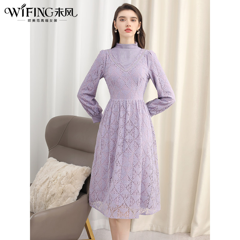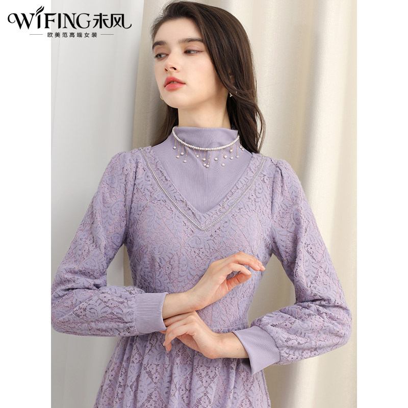 加绒加厚打底内搭裙子 女装 未风紫色蕾丝连衣裙女冬2025年冬季 新款
