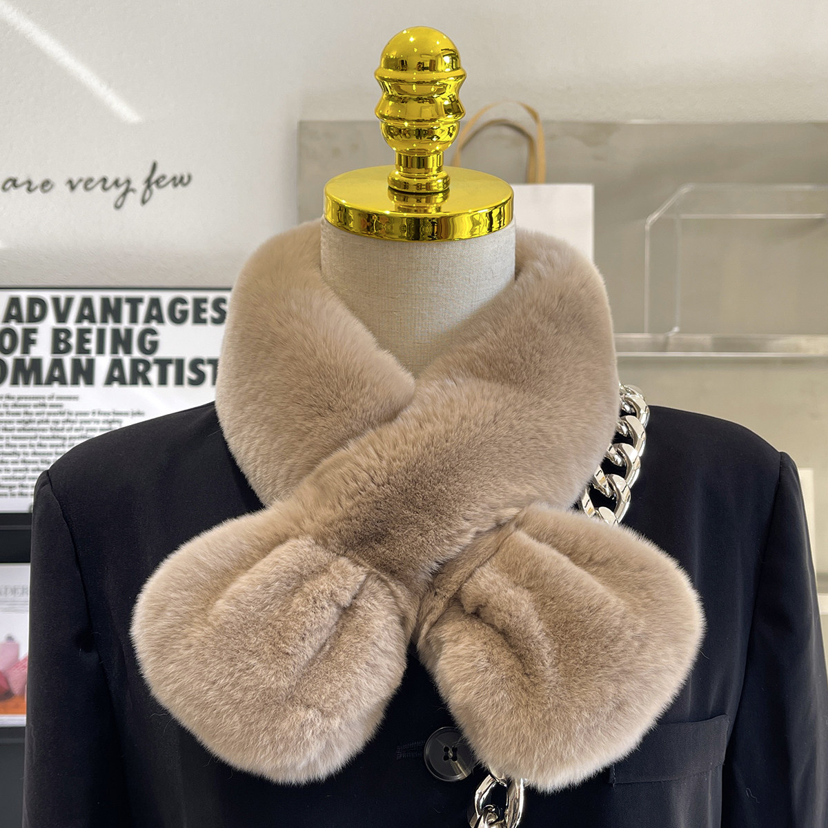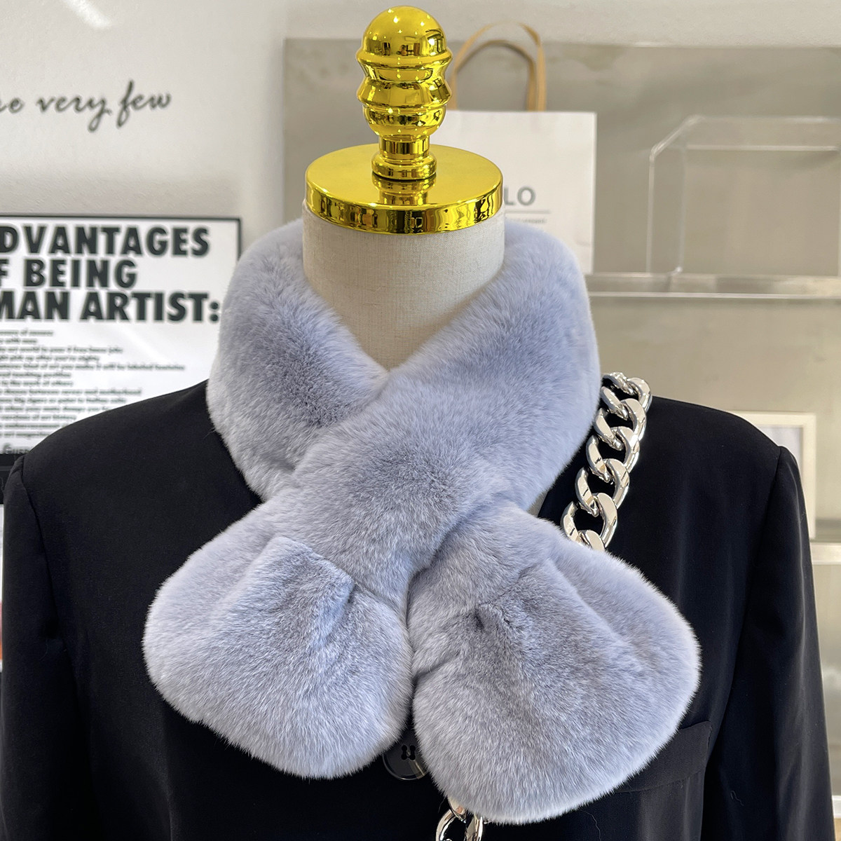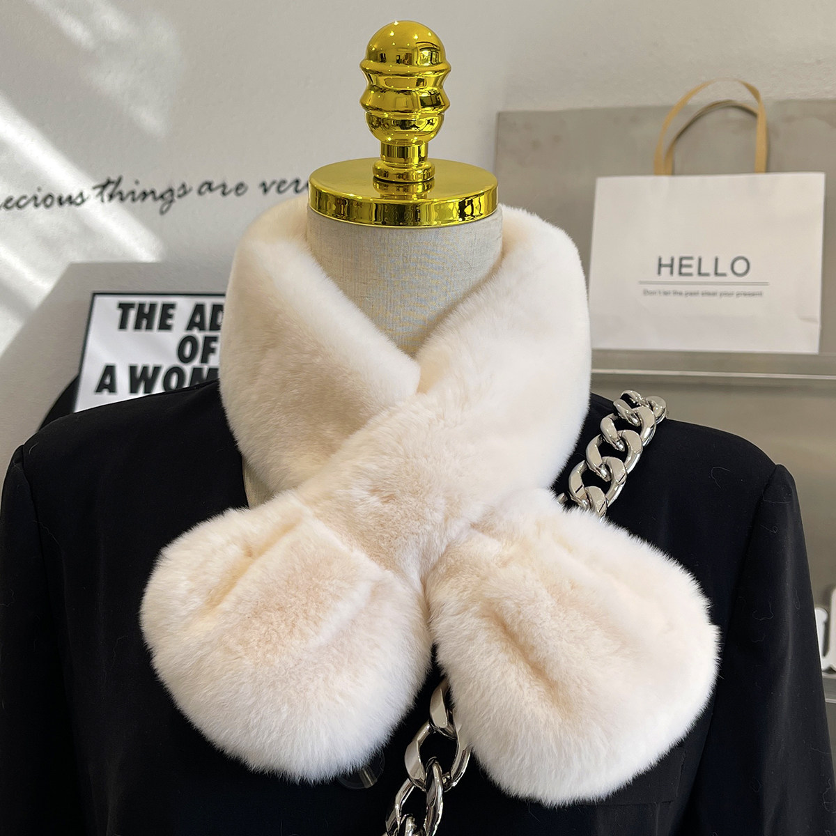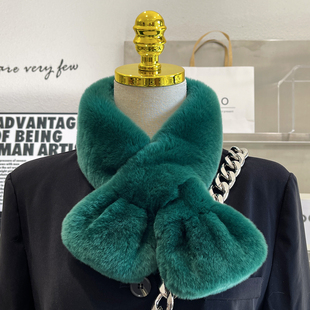 天鹅绒级整皮獭兔毛围巾女冬季 纯色真毛皮草围脖双面加厚保暖 韩版