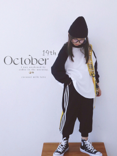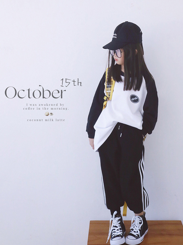 休闲宽松卫衣 E女童卫衣圆领卫衣380克黑拼白加厚卫衣早秋款 AND