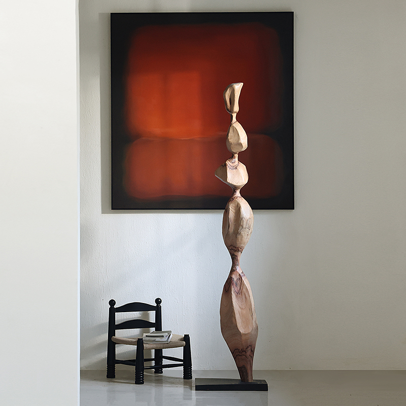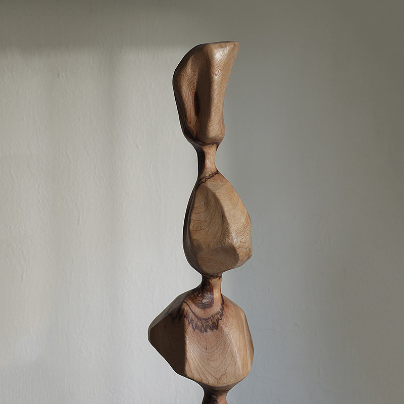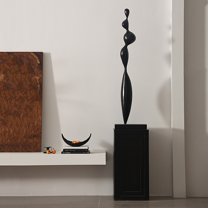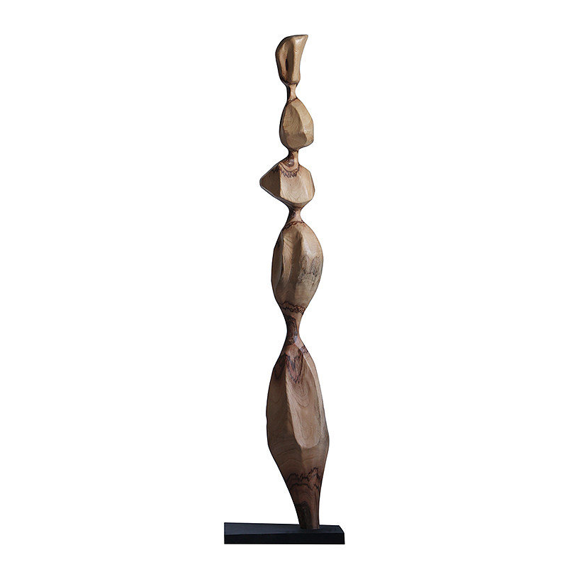 形上侘寂风实木雕塑橱窗装 饰玄关客厅茶室几何柱子大型落地摆件