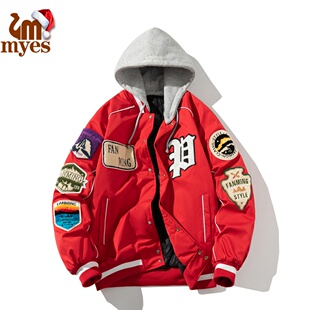 mYes牧野森潮牌夹克连帽毛巾绣休闲加厚情侣棒球服外套男棉衣女