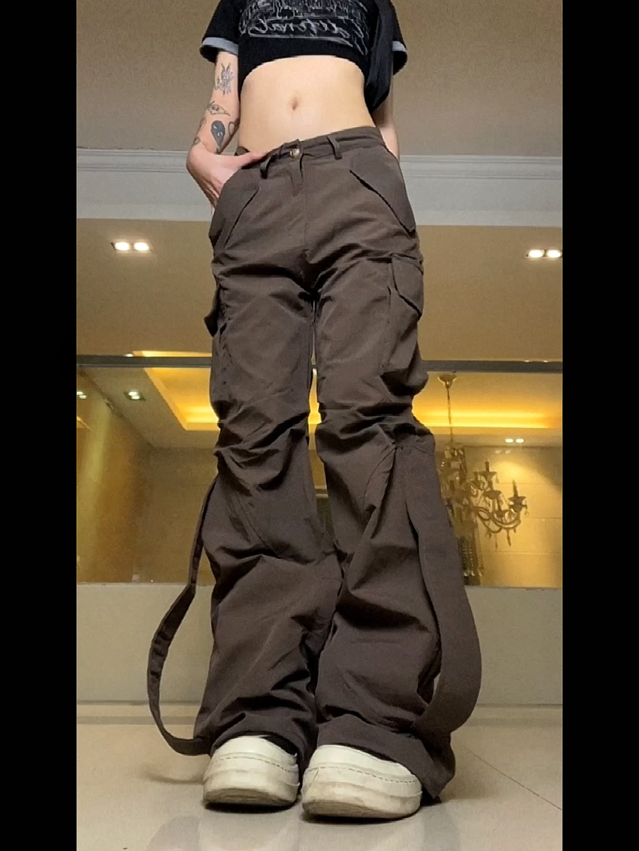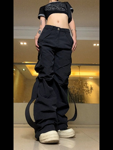 男女百搭裤 F383 薄款 简约褶皱口袋休闲长裤 ins 2022AW国潮原创美式