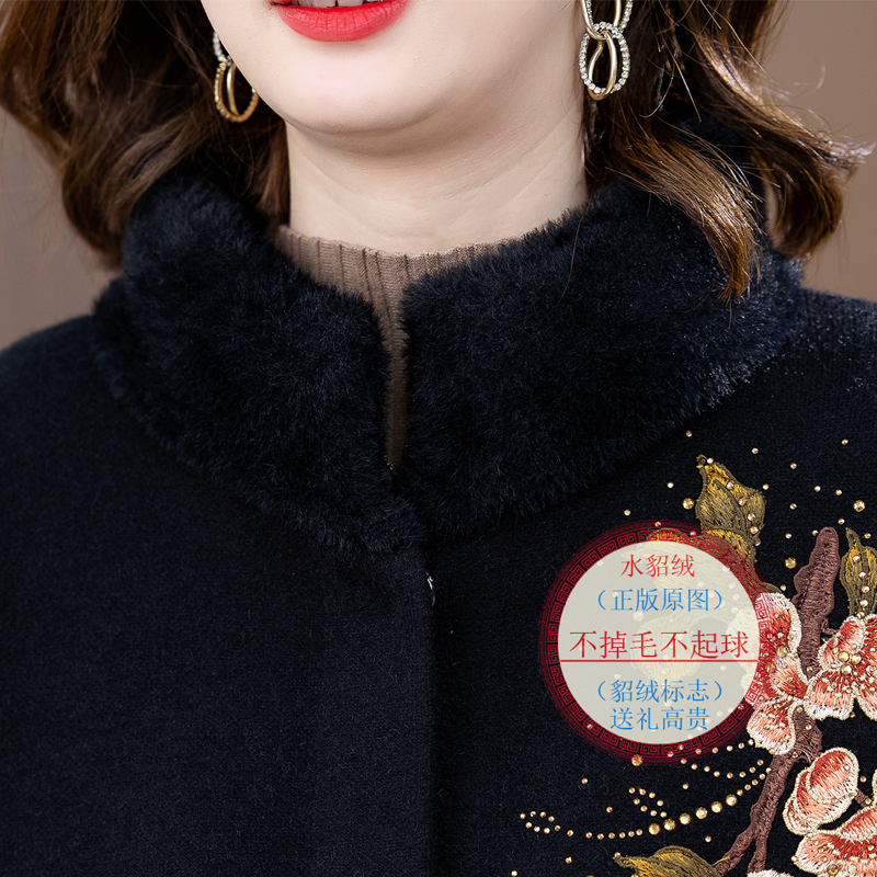 秋冬高档外套洋气加大码 大衣胖妈妈装 双面呢羊绒衫 中老年女中长款