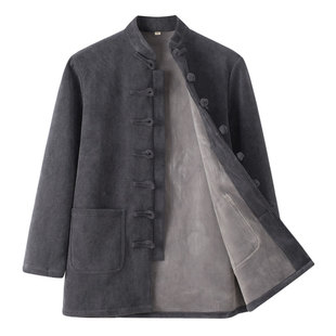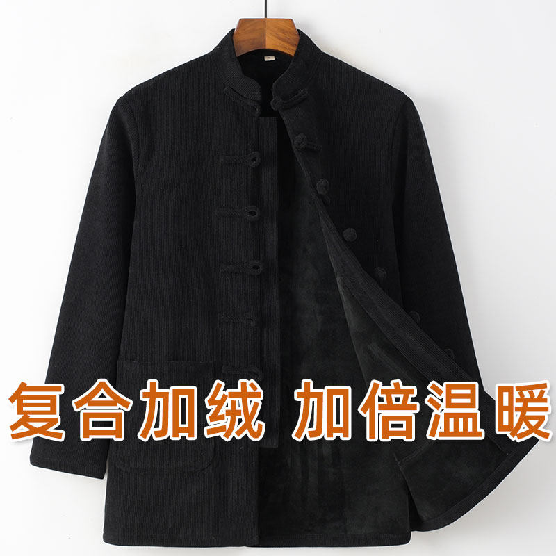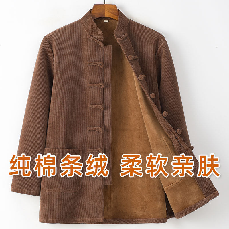 国潮条绒保暖上衣加绒加厚潮酷秋冬外套 服装 唐装 男青年中国风中式