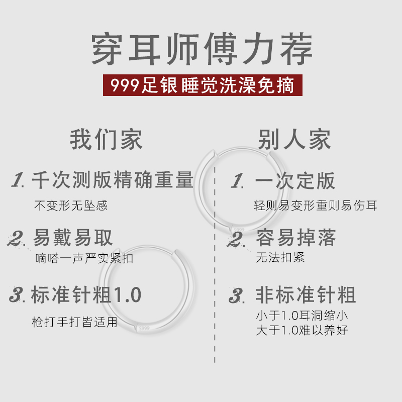 简约耳钉养耳洞耳扣耳圈高级感单只 男士 925纯银耳环2024新款 爆款