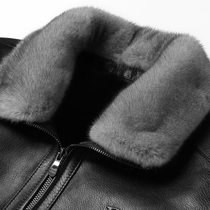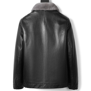 皮夹克大毛领羊羔毛潮男皮衣 皮毛一体中年短款 男士 绵羊皮真皮衣