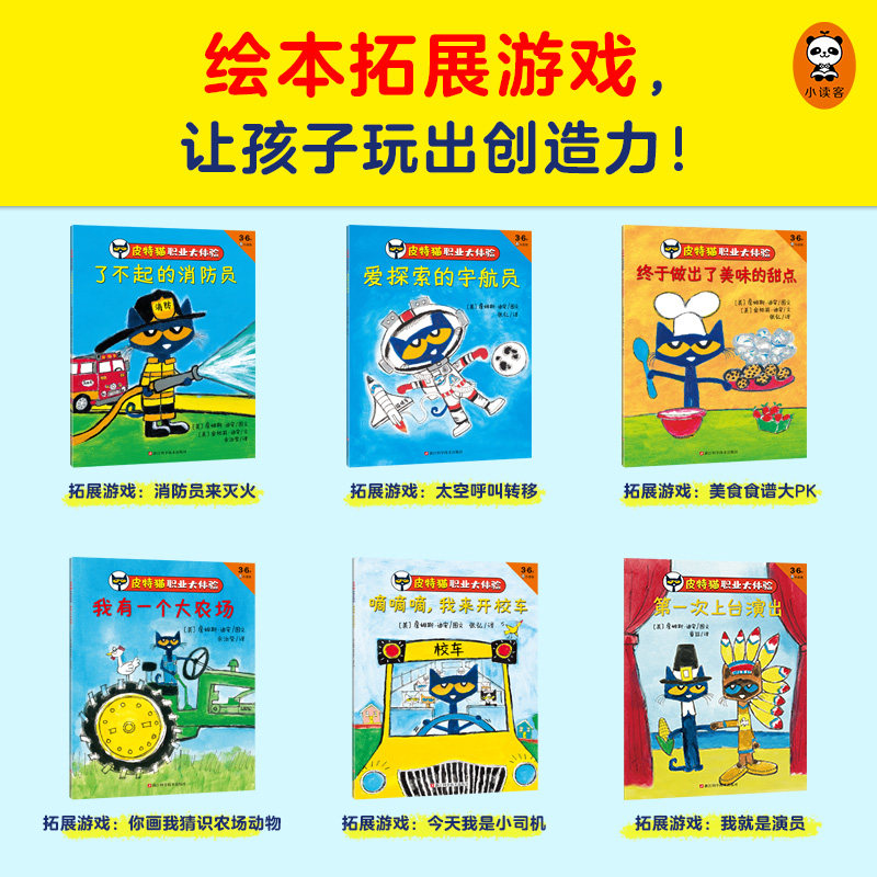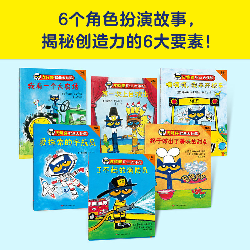皮特猫职业大体验全六册3 6岁幼儿童角色扮演绘本故事创造力游戏宝宝戏精消防员宇航员糕点烹饪农场开车演出想象太空探索大胆尝试