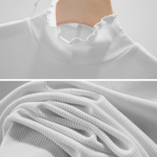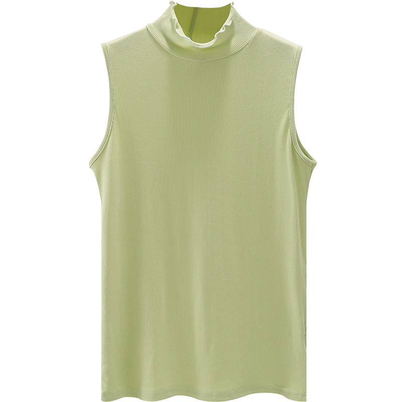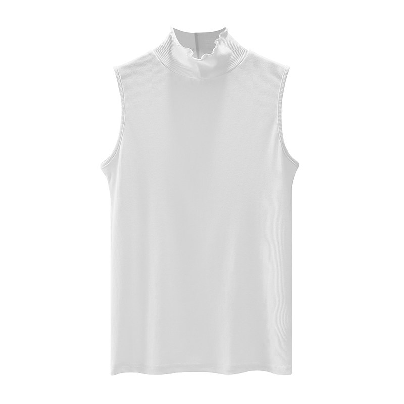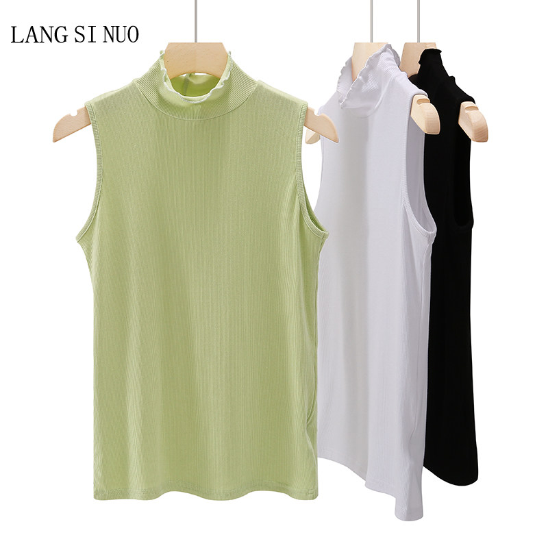 新款 无袖 韩版 纯棉纯色上衣内搭女打底衫 背心 中高领荷叶边修身 春季