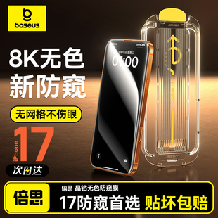 倍思无色防窥膜适用苹果iPhone17ProMax钢化膜16Pro无尘仓ip15手机贴膜AR抗反射360°防偷窥14防摔Air保护13
