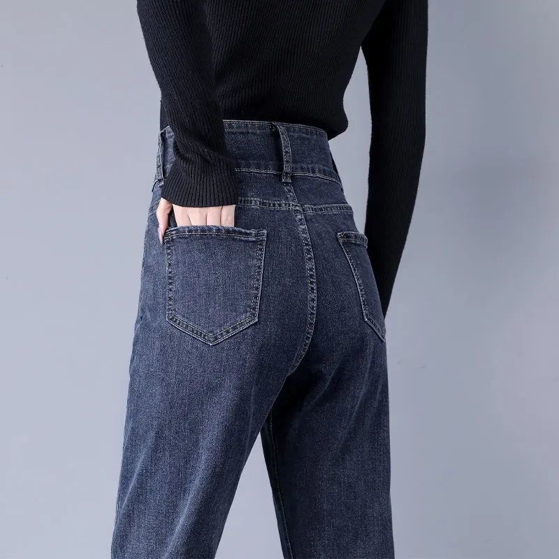 秋冬高腰显瘦弹力烟管裤 女2025新款 小个子 直筒加绒牛仔裤 复古窄版