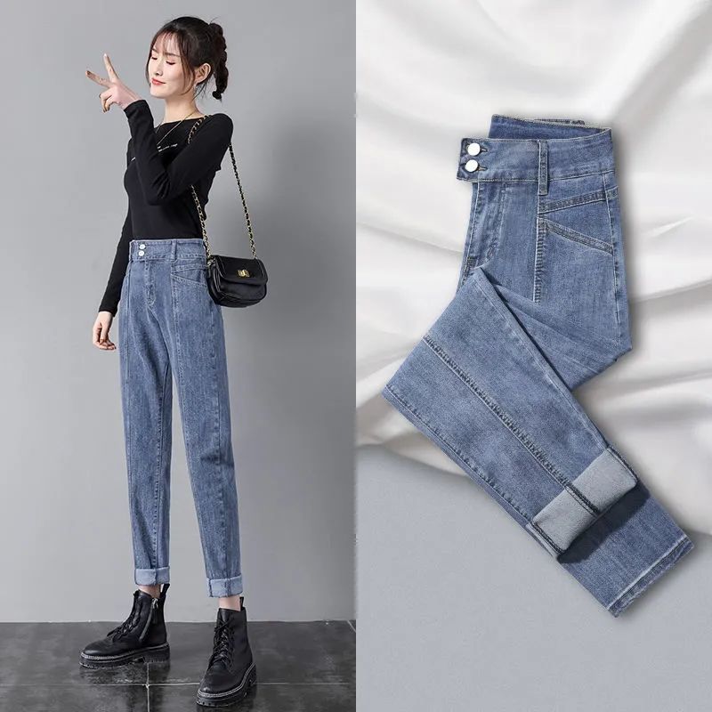 紧身弹力加绒小个子铅笔裤 女2025秋冬新款 复古高腰小脚牛仔裤 美式