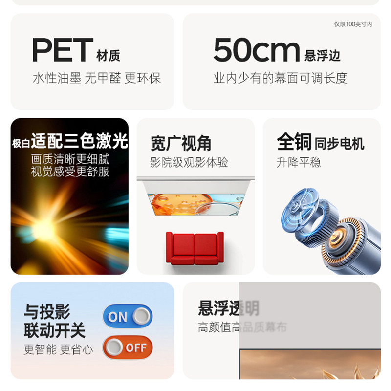 120寸壁挂投影仪幕布 投影布适配极米坚果当贝家用超高清100 鲸米嵌入式 悬浮投影幕布电动升降拉线光子隐藏式