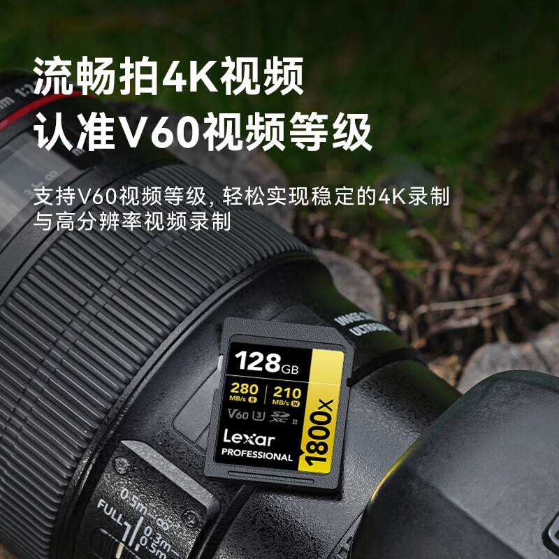 Lexar雷克沙SD卡128G相机内存卡相机V60存储卡高速闪存卡1800x