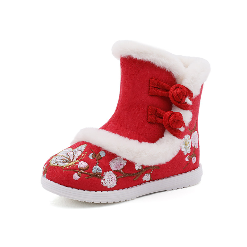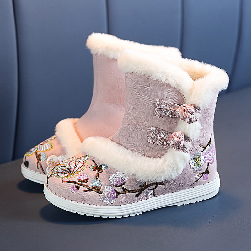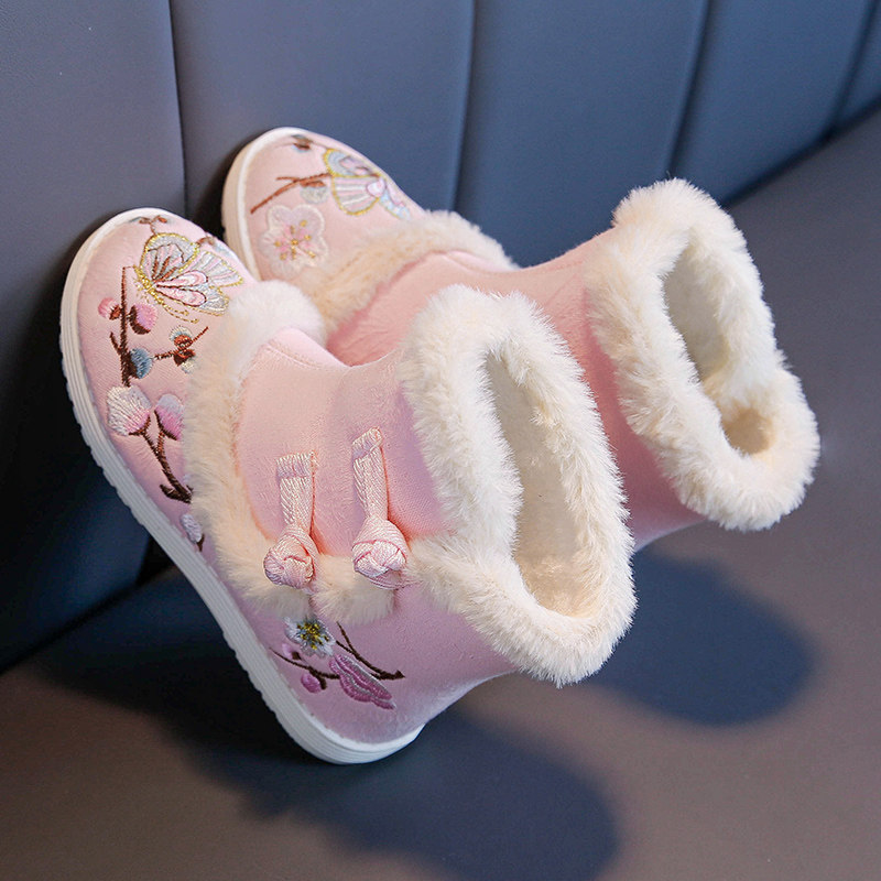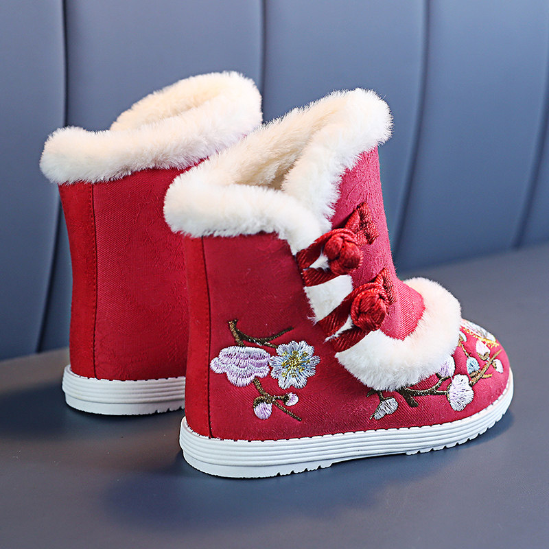 2025冬季 古风绣花鞋 新款 子女童马面裙鞋 棉靴加绒拜年鞋 儿童汉服鞋