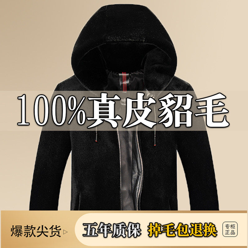 海宁男士 水貂绒皮草高档貂皮貂绒大衣男皮毛一体外套真皮皮衣 冬季