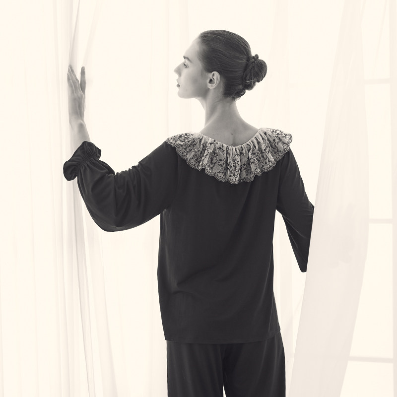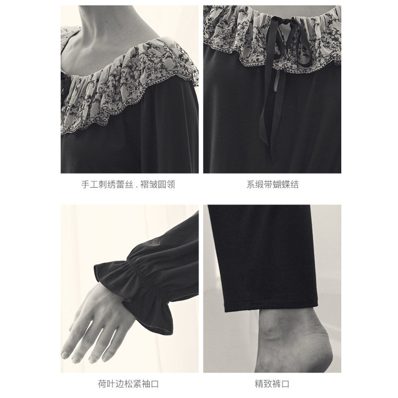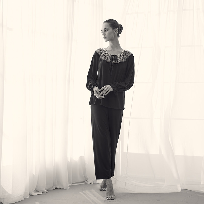 爆款 黑玫瑰 推荐 莫代尔法式 L902 裸感睡眠家居睡衣套装 BRIDA