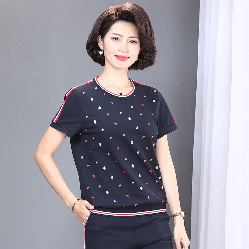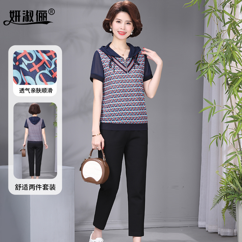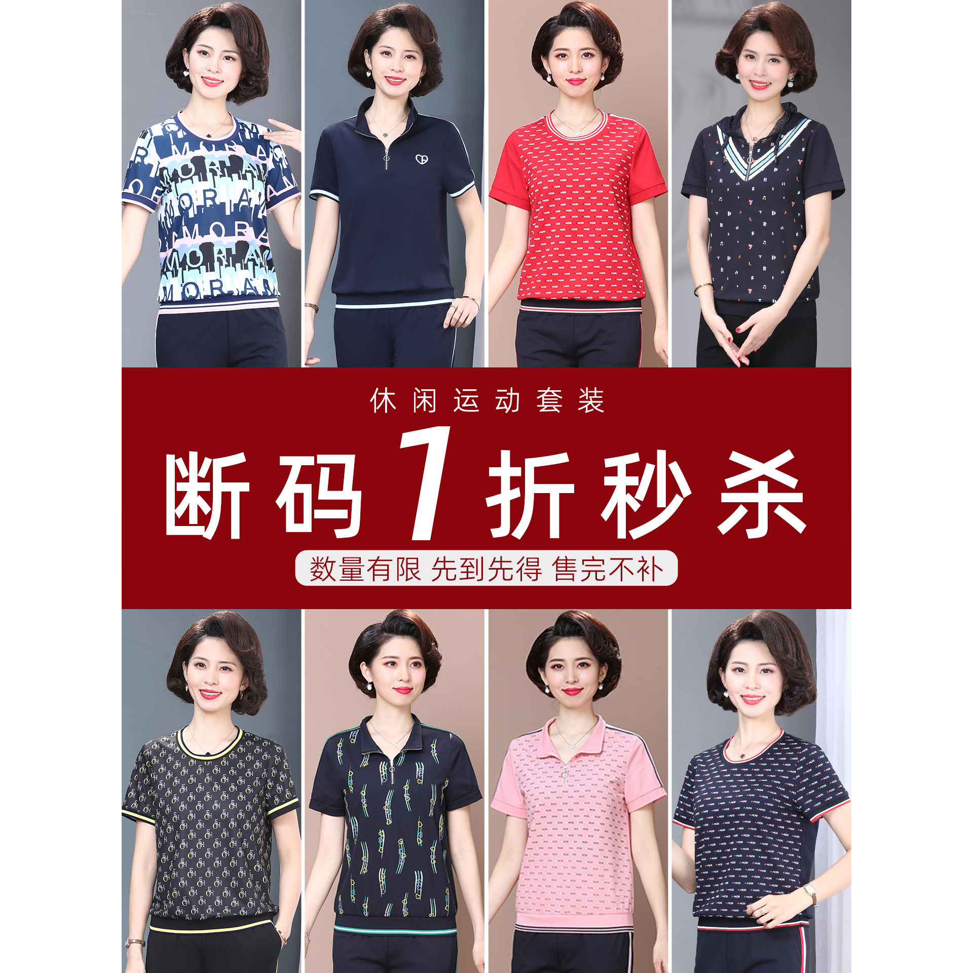 t恤两件套裤 洋气高档次中老年人特价 子衣服 休闲运动套装 妈妈夏装