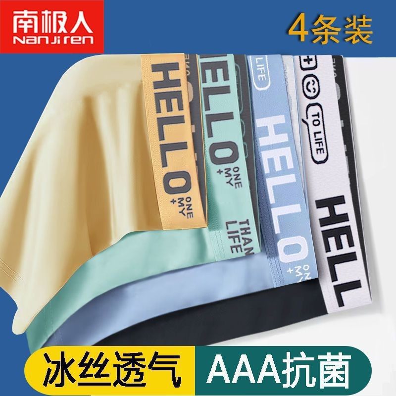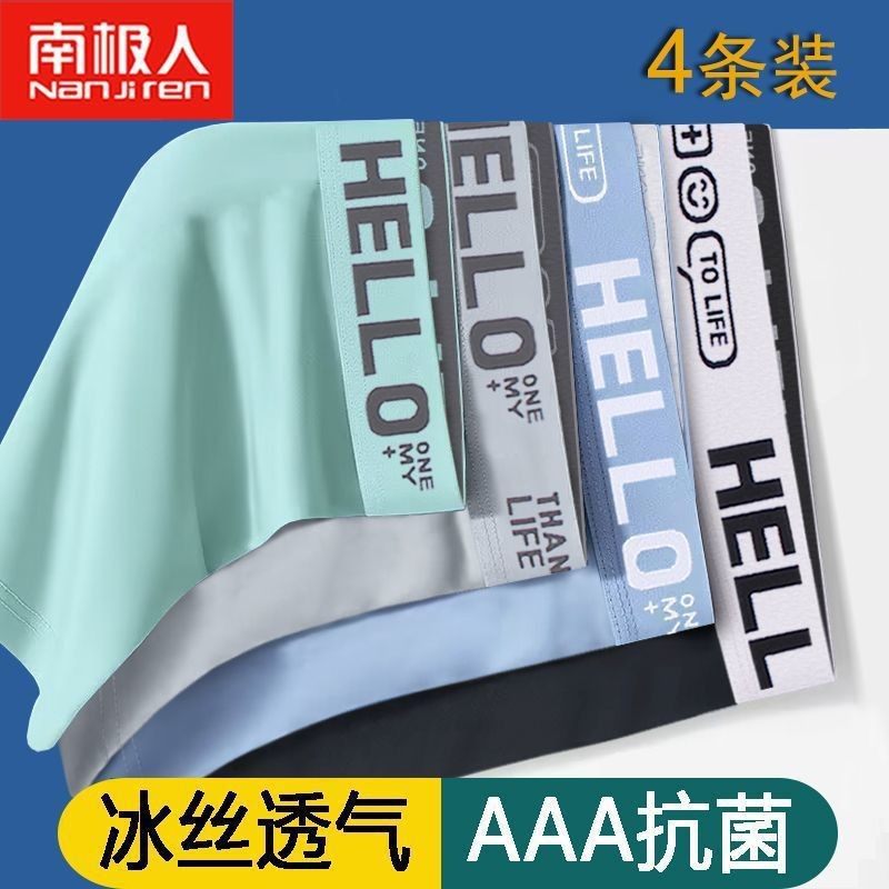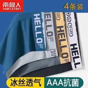 男士 2025新款 冰丝男生四角平角短裤 男款 头纯棉裆夏薄款 南极人内裤
