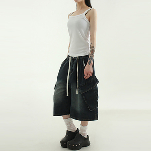 男女 刷蜡银双腰拼接原牛高级设计感Baggy直筒牛仔裤 DETW 25AW