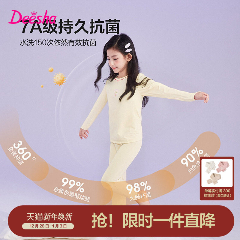 新款 秋冬季 儿童抗菌天丝棉家居睡衣 女童内衣套装 笛莎官方旗舰童装