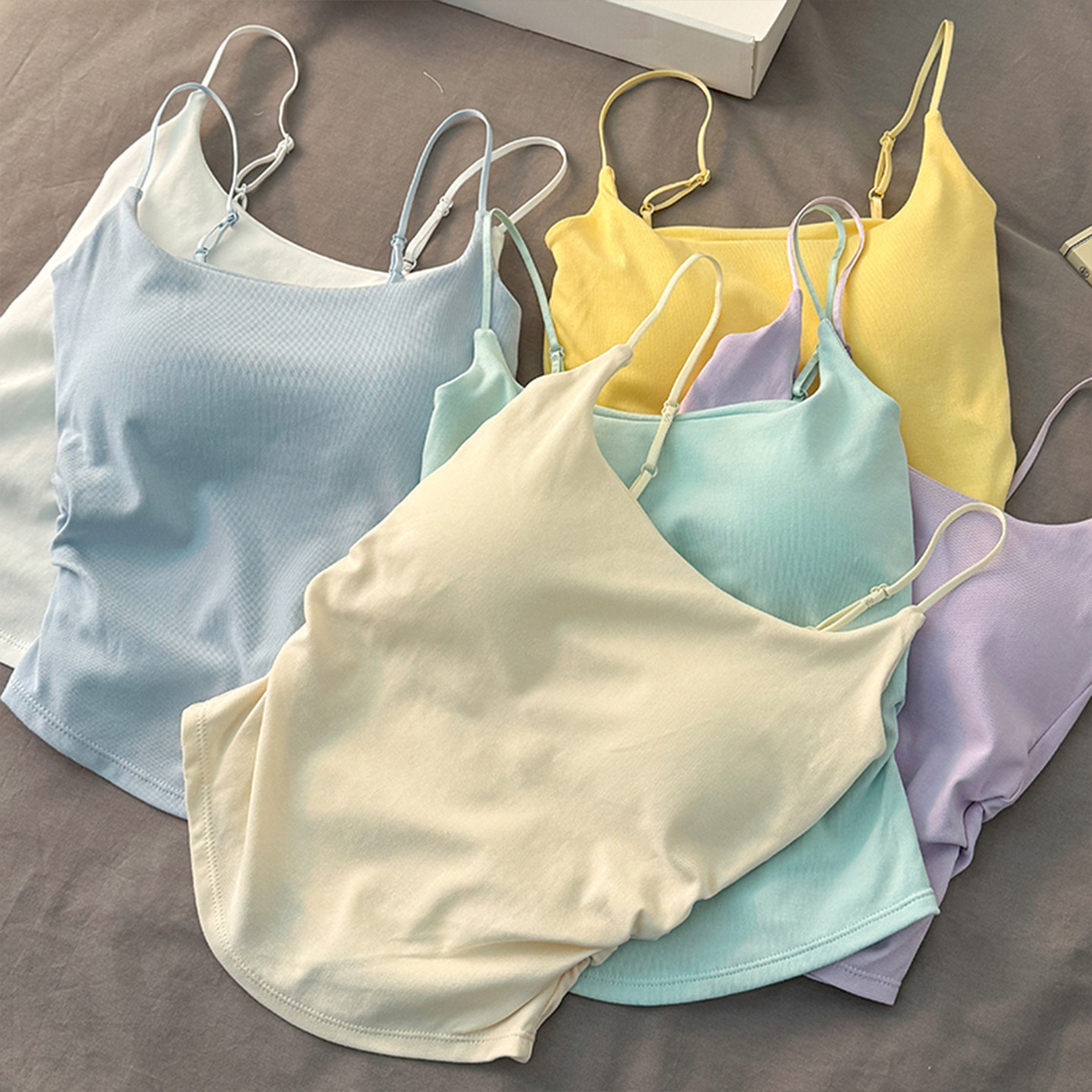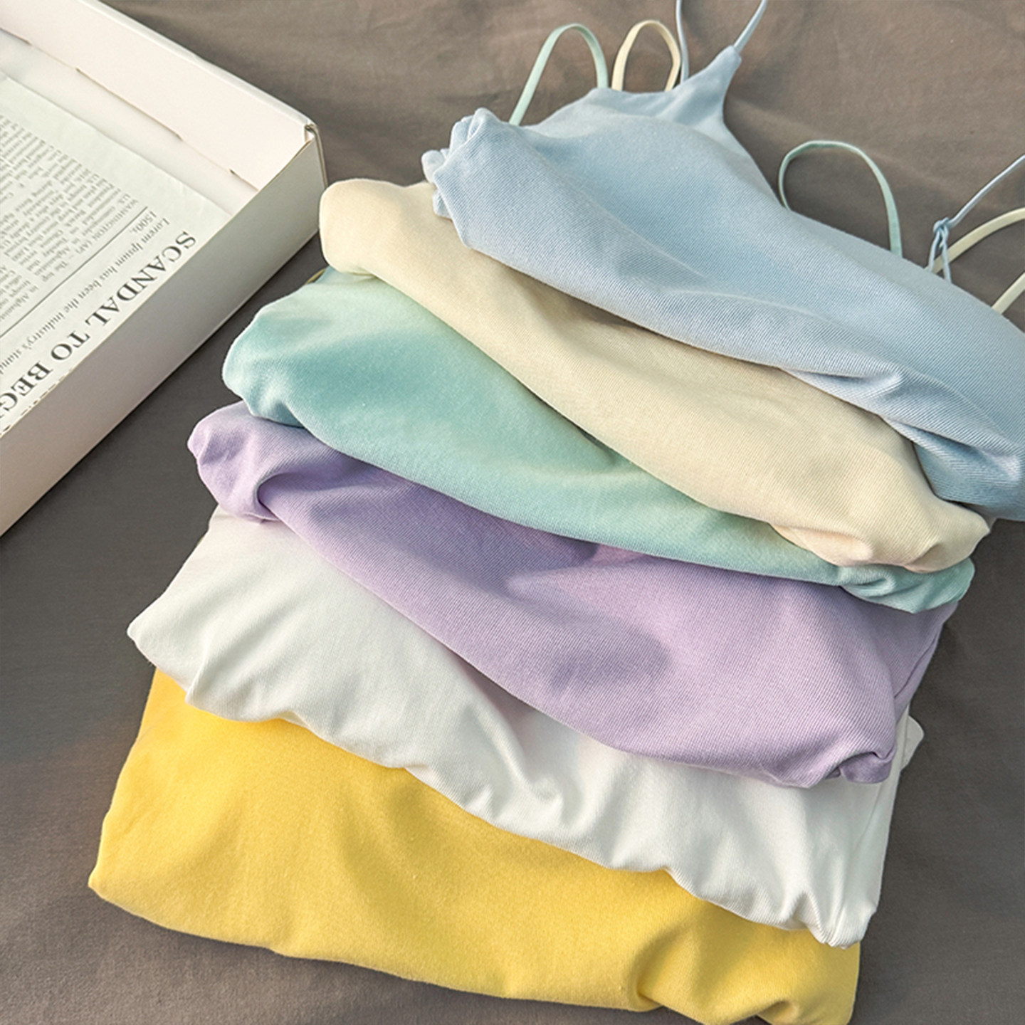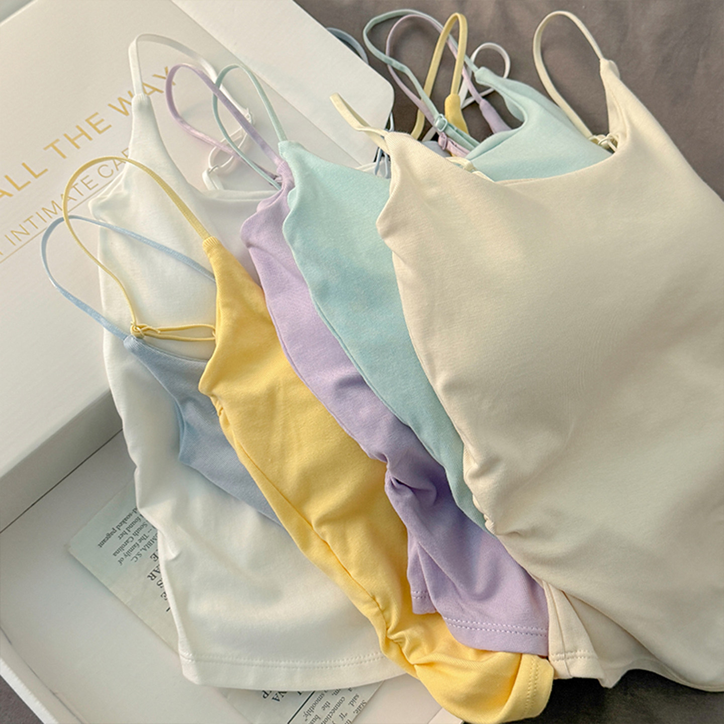 小清新纯欲风辣妹设计褶皱吊带背心女夏季 美背上衣 内搭带胸垫修身